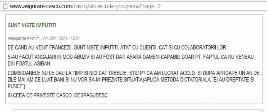 Nemultumit de Groupama - 26 12 Martie, 2013 Scris de Bogdan Stoica Publicat în Groupama Citit 3716 ori dimensiune font scade mărime font creşte dimensiunea fontului Ultima modificare Miercuri, 20 Martie 2013 09:28 Evaluaţi acest articol 1 2 3 4 5 (0 voturi) Tweet Mai multe din această categorie: « Nemultumit de Groupama - 25 Nemultumit de Groupama - 27 »
